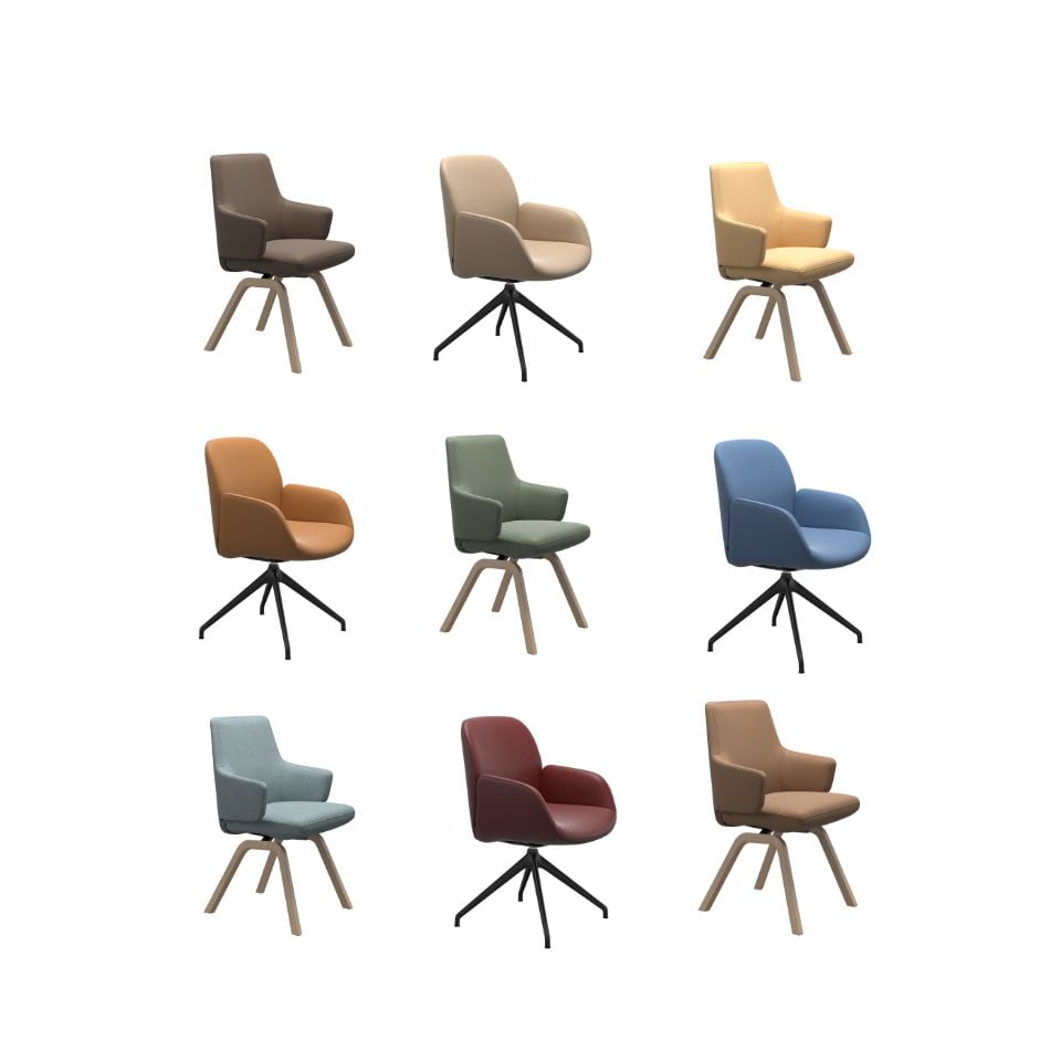 The 360° swivel bases of the Stressless® dining chairs make sitting down and standing up easier: Simply turn the seat to the side to get up comfortably without having to pull the chair away from the table.