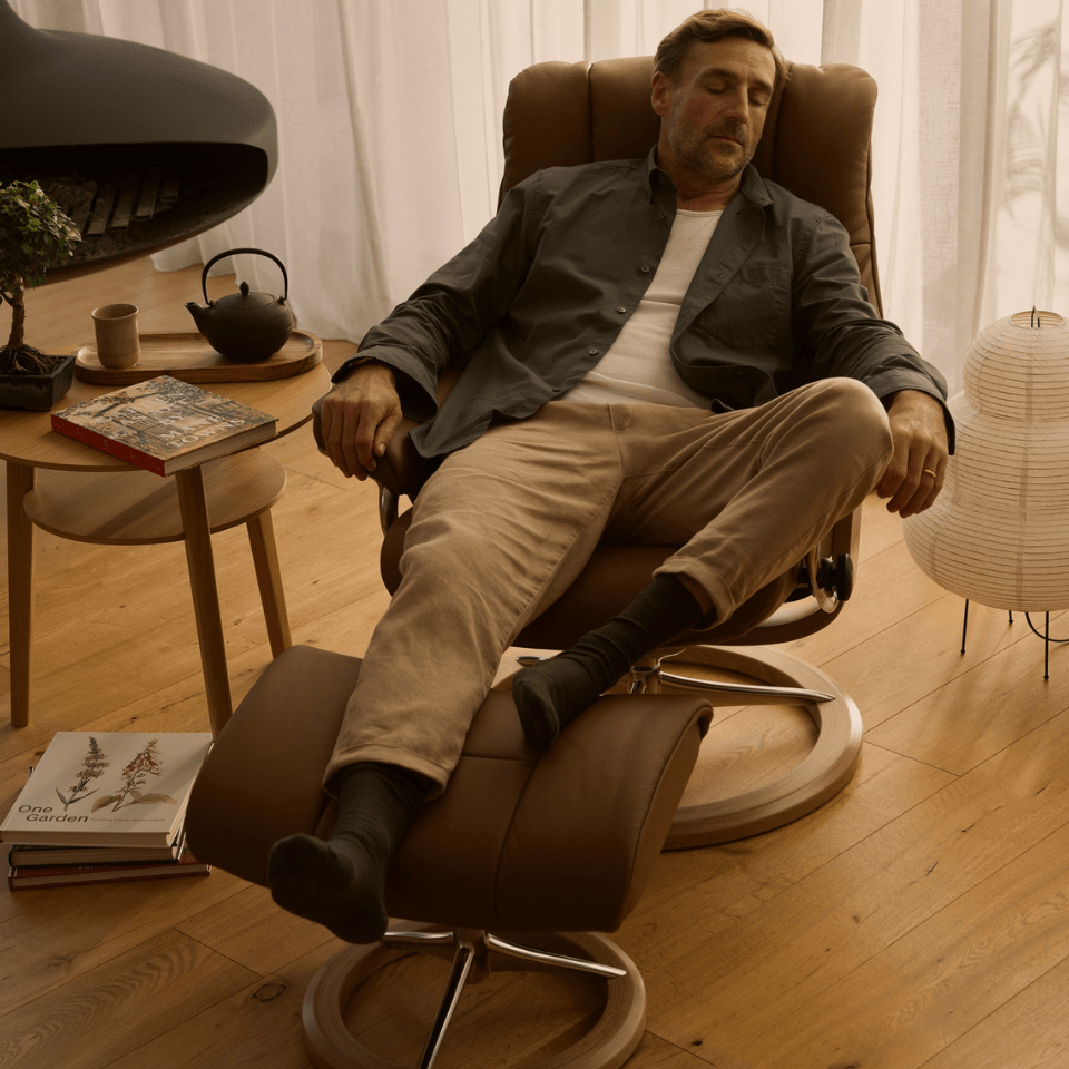 Das moderne Leben hat unsere Erwartungen an Ästhetik und Komfort bei unseren Wohnmöbeln erhöht. Gleiches gilt für das Leben im Büro. Heutzutage definieren wir Arbeit und wo sie stattfindet fließender. Dadurch sind wir uns bewusster, wie viele Stunden wir bei der Arbeit im Sitzen verbringen – und wie wichtig eine gute Ergonomie ist. Wenn Sie von einem Stressless® Relaxsessel aus arbeiten, bleiben Sie die ganze Zeit beweglich. Der Stressless® Rome kann mit einem Home-Office-Untergestellt mit Rollen ausgestattet werden und ist bereit, Sie durch den Tag zu tragen – wo auch immer Ihr nächstes Büro sein mag.