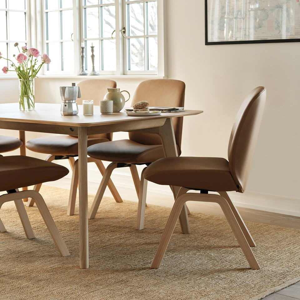 Stressless® Bay is a refined, luxurious dining chair with an elegant, enclosing design and organic, rounded shapes. The generous back height provides support in any seating position, allowing you to lean back and dine in comfort and style.