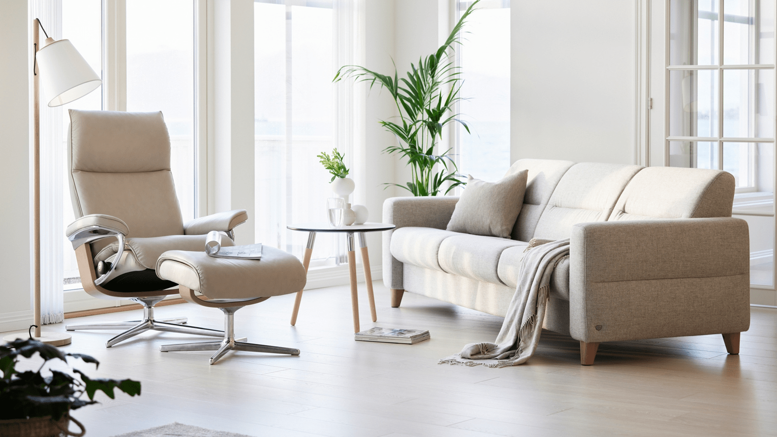 Scandinavian living is all about simplicity. Clean lines are modern and effortless. Less is more, and architecture is first and foremost about creating liveable, airy spaces. Nature is a constant presence through large windows, with the lines of the beautiful wooden floors drawing your gaze towards the trees outside. Within this decor, Stressless® designs stand out and create a presence that fills the space. The furniture cuts precise contours in the room as an aesthetic contrast to the white walls and the surrounding natural world.