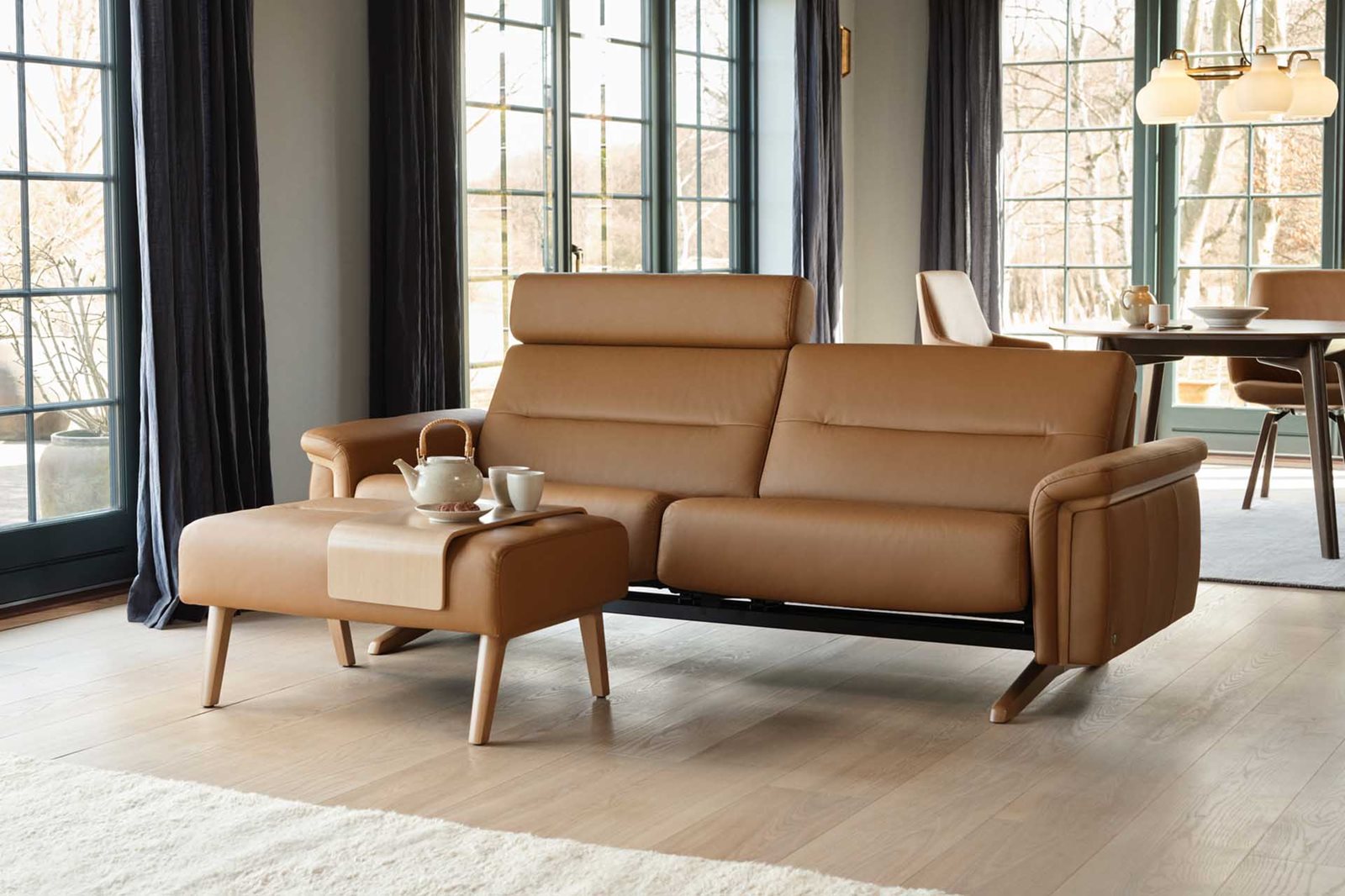 Bring the rustic feeling of nature into your home with colors in earthy shades of brown and wooden details that create a warm and cozy feeling. Choose a statement sofa in quality materials that is equally stylish and comfortable – and let it be the centerpiece of the living room. This will become the natural spot for the whole family to gather and recharge, enjoying some true quality time provided by the Stressless® comfort that naturally allows you to harmonize and relax.