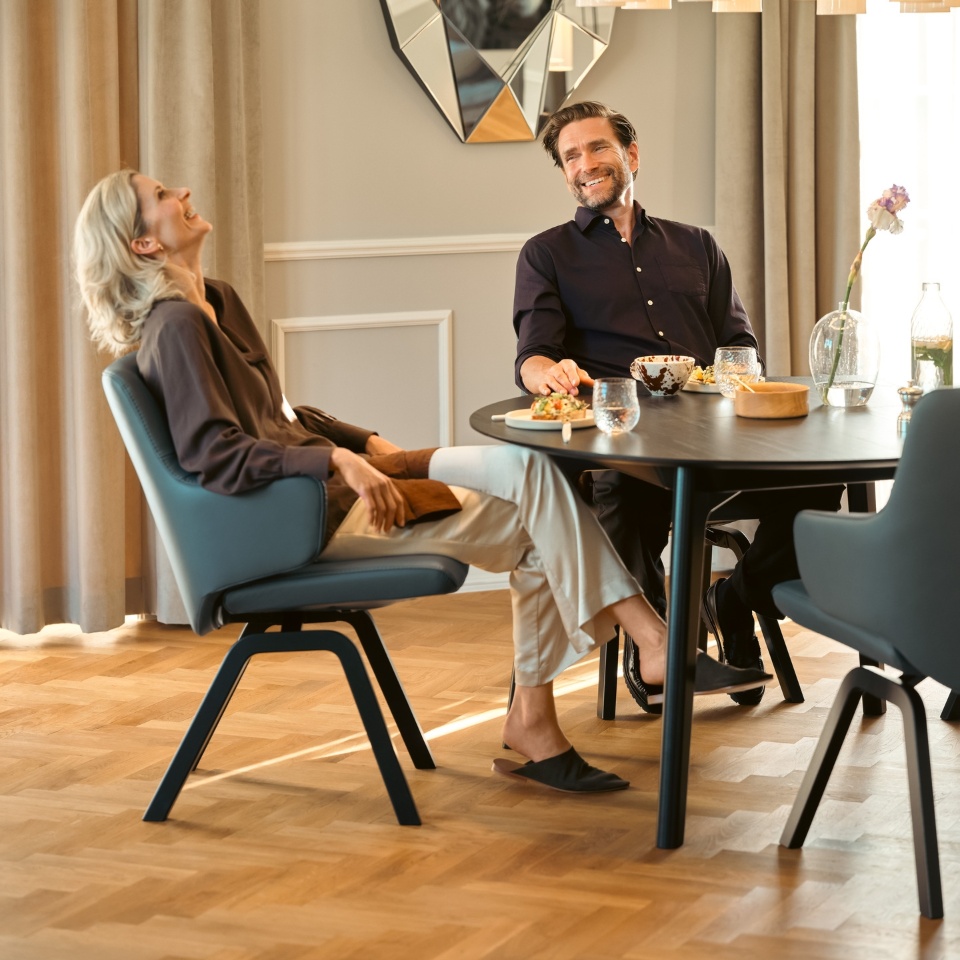 Les chaises Stressless® sont conçues pour s’adapter à votre corps, pas contre lui. L’assise et le dossier flexibles suivent et répondent aux mouvements de votre corps d’une manière unique, offrant une variété de positions pour un confort total. Avec les chaises Stressless®, vous pouvez passer des heures avec un confort total.