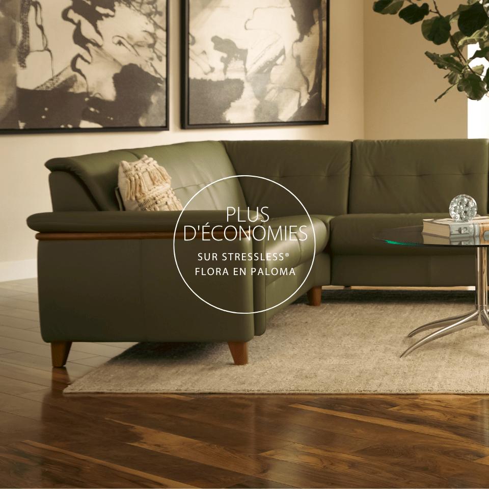 Profitez d’un rabais de 500 $ sur les fauteuils inclinables Stressless® Wing en cuir Paloma et de prix spéciaux cuir Paloma sur les canapés et causeuses Stressless® Flora Wood, Fiona, Manhattan et Oslo