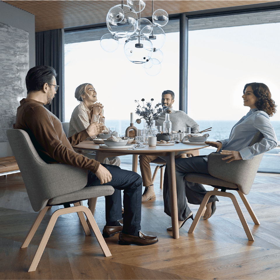 La vie scandinave est synonyme de simplicité. Les lignes épurées sont modernes et simples. Moins, c’est plus, et l’architecture consiste avant tout à créer des espaces agréables et aérés. La nature est constamment présente à travers de grandes fenêtres, avec les lignes des magnifiques parquets qui attirent votre regard vers les arbres extérieurs. Dans ce décor, le design Stressless® se distingue et crée une présence qui remplit l’espace. Le mobilier découpe des contours précis dans la pièce en contraste esthétique avec les murs blancs et le monde naturel environnant.