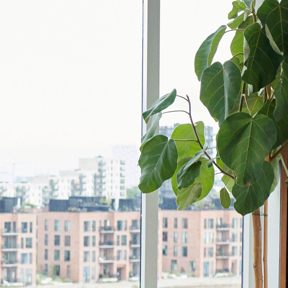 無機質な部屋も白い壁と美しい木の床で暖かみがでます。背の高い窓が明るく風通しの良い空間を演出し、ストレスレス® ソファやリクライニングチェアの美しいブラウンの色合いが引き立てられています。屋上からの眺め、ルーフガーデン、街のスカイラインを見ながら、ゆったりとくつろいでエネルギーを充電しましょう。