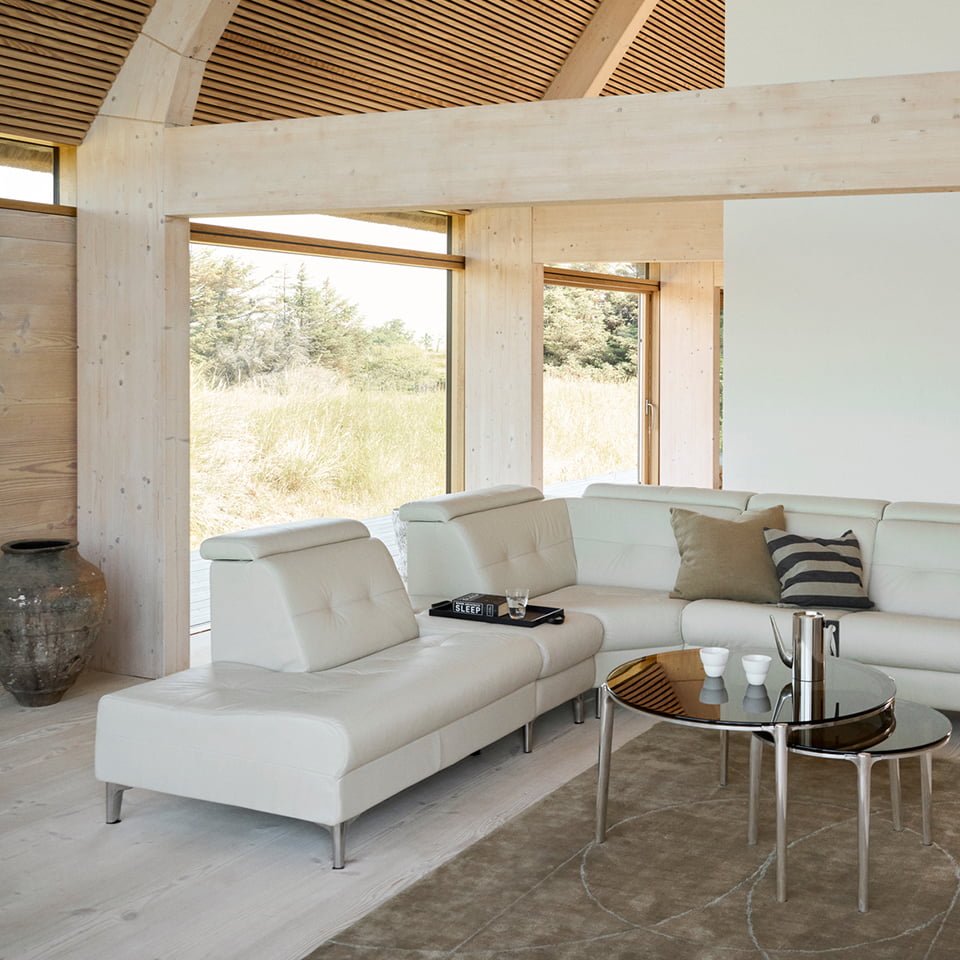 ストレスレス® アナ ソファでは、電動モジュールと手動モジュールを横に並べて選択することができます。電動機能を選択すると、背もたれをリクライニングにすると、足の下にフットレストがスムーズに伸びます。電動ヘッドレストは、足を上げた状態でリラックスに最適なポジションを提供します。手動シートでは、手でヘッドレストの位置を調整することができます。ヘッドレストを折りたたんだ状態では、見た目は小さく見えます。直立位置のときは、優れたヘッドサポートを提供し、ローバックソファをハイバックに切り替えます。