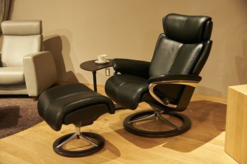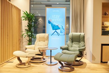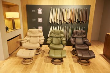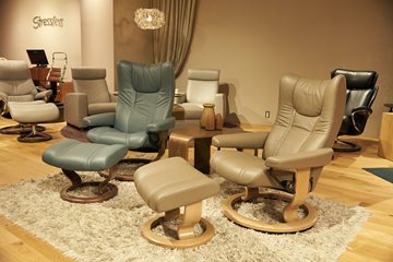 ストレスレス®ショールーム大阪では、リクライニングチェア(パーソナルチェアオットマン付き)・ソファ・ダイニングチェアを実際に座り比べながら、ご自身の体格・姿勢・ライフスタイルに合う一脚を見つけることができます。