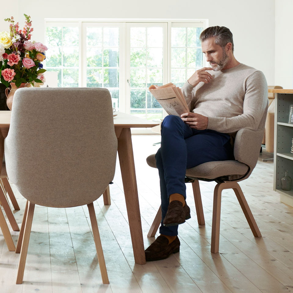 Com a Stressless®, você pode trazer cores naturais, conforto, materiais e estilo de vida para sua própria casa. A Stressless® dá a você a liberdade de construir sua poltrona reclinável, sofá ou mobília de jantar pessoal. Você pode expressar seu senso de detalhe e a alegria da união de uma maneira que é única para você. Bem-estar e um estilo de vida descontraído naturalmente andam de mãos dadas, então por que não desfrutar de ambos no seu dia a dia?