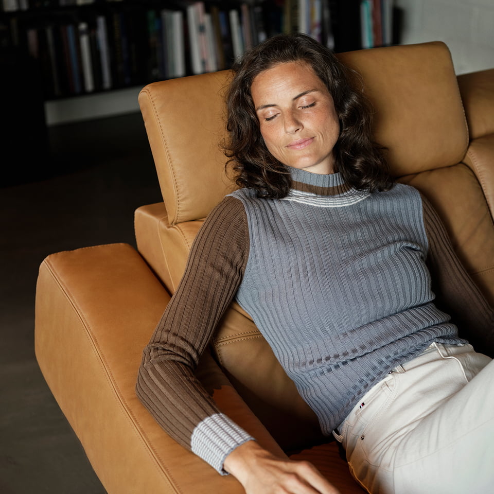 使用 Stressless® Anna 沙發,您可以完全自由地並排選擇電動和手動模塊。選擇電動功能後,當靠背傾斜時,腳踏板會在您的腳下平穩延伸。電動頭枕緊隨其後,為您提供最佳放鬆姿勢,雙腳抬起。在手動座椅上,您可以用手調節頭枕的位置。頭枕處於折疊位置時,沙發在視覺上顯得更小。在升高的位置,它提供了良好的頭部支撐,並將低背沙發變成了高背沙發。